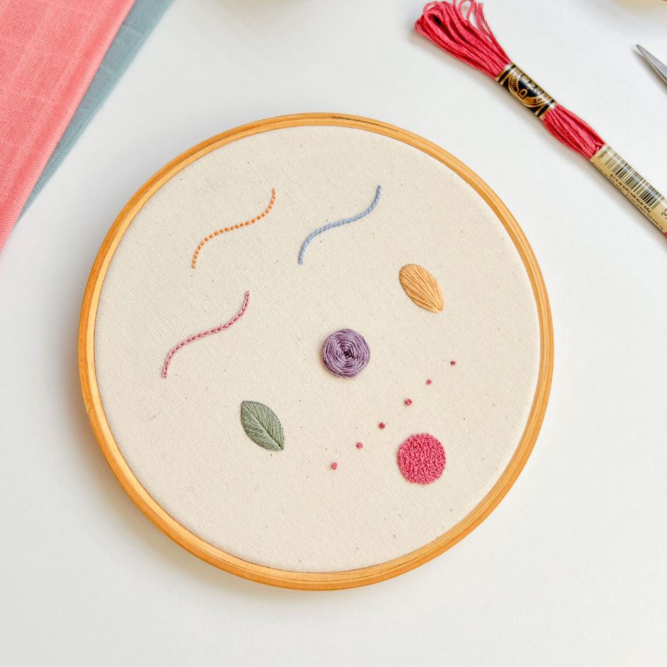 Vamos aprender os pontos mais utilizados no mundo do bordado: ponto atrás, ponto partido, ponto pirulito, ponto folha, ponto rosa, ponto cheio e nó francês.